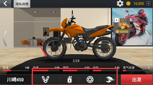 2、利用游戏内奖励升级摩托车性能、包括引擎和轮胎等部件。参与多种竞技模式如街头竞速或特技闯关、体验不同驾驶乐趣。