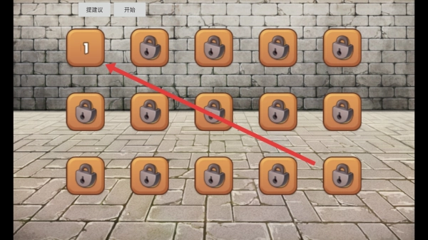 2、切换至关卡选择页面后,将目光聚焦到标有数字1的已解锁关卡方块上,点击它从而进入第1关,沉浸式体验城堡内部独特的闯关乐趣与奇妙设定。