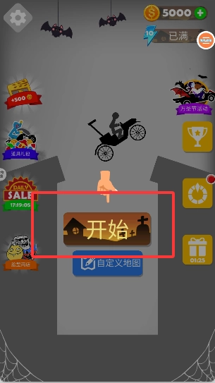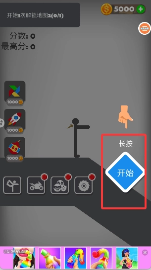 3、进入游戏后,长按开始按钮,即可发射火柴人。