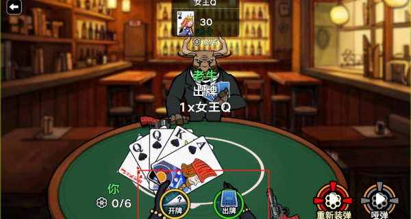 2、其他玩家可质疑出牌真实性,若质疑成功,出假牌者需参与俄罗斯轮盘赌;失败则质疑者受罚。