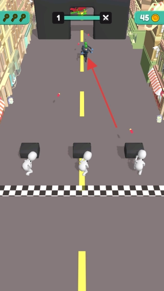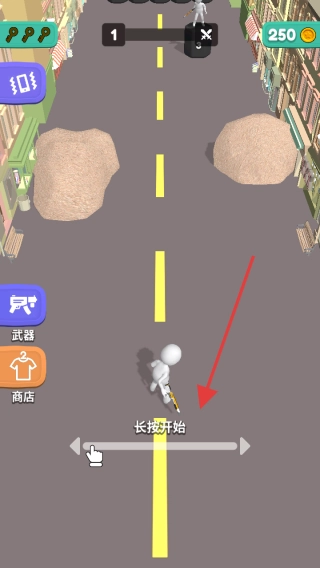 1、游戏开始后,长按开始按钮操控角色向前移动,要留意避开道路上的石块之类的障碍物。