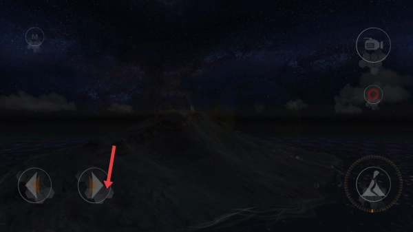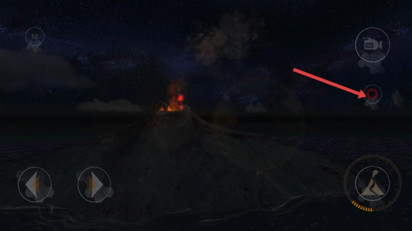 1、通过操控左右箭头按钮来调整观察视角,逐步拉近与火山区域的距离,留意喷发前的征兆。