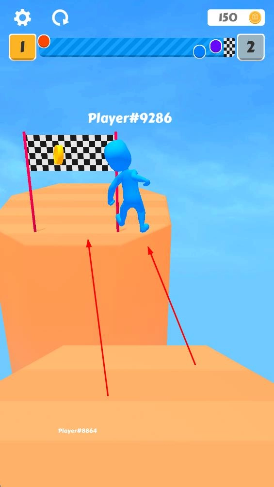 3、全力冲向黑白格子样式的终点区域,率先抵达即可取得胜利,完成关卡挑战。