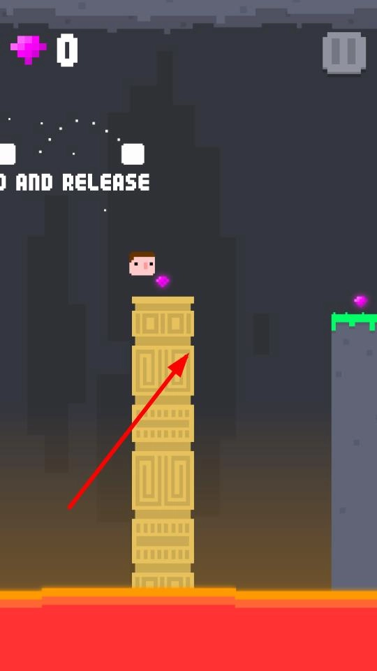 1、跳跃力度把控:核心操作依赖“按住屏幕时长”控制跳跃大小,短按小跳适应近距离支柱,长按大跳跨越宽距,需根据支柱间距精准调整,避免跳空坠入熔岩。