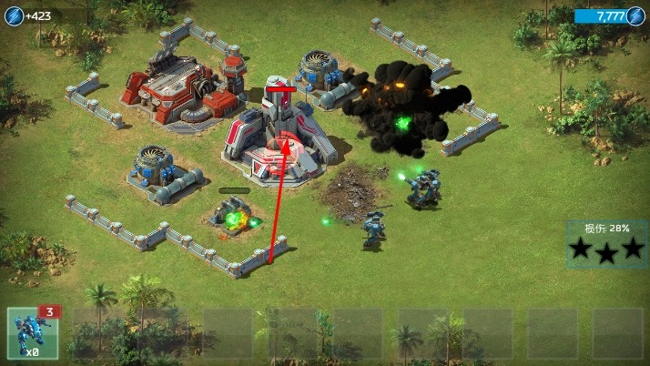 2、完成基地部分建造后,点击已部署的部队,指挥它们向敌人的防御设施或基地发动进攻,观察战场局势,安排部队的进攻路线和攻击目标。