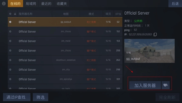 3、然后选择一个游戏模式,点击【加入服务器】即可;