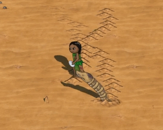③沙漠:沙漠地区分布在地图的边缘,是获取青铜矿、锡石矿、刺刺果、茄子、无花果、奥里卡多等物品的主要地貌,该地貌还包含斑羚、嚎狼、沙漠獠牙等动物。