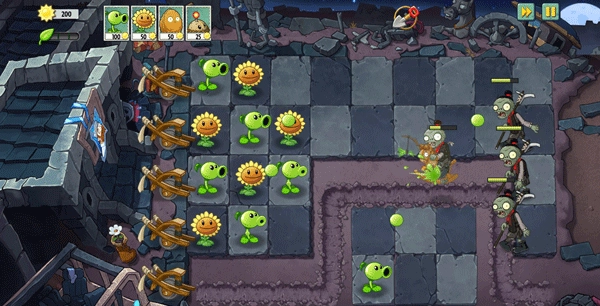 游戏开局,你需要选择本局使用的植物。植物的数量有限,因此要谨慎选择。在游戏过程中,你可以自由布置植物防线,但切记要种植向日葵来保证充足的阳光供应。