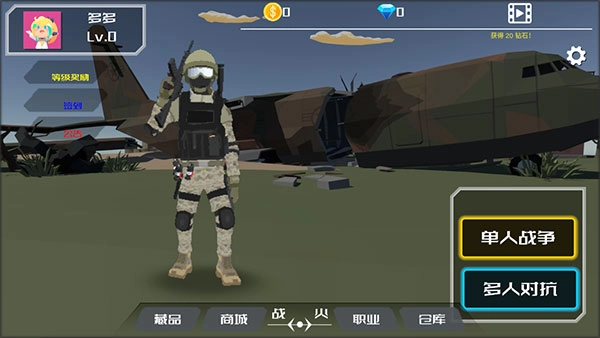 1、安装好战火1前线争端,首先进入游戏主界面,你可以选择右下方的单人战争和多人对抗进入游戏。