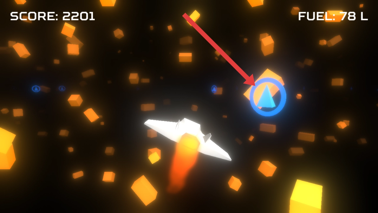 1、你得操控自己的飞船朝着蓝色三角图标飞去并完成收集,以此获取重要的游戏资源,提升局内的游戏积分。