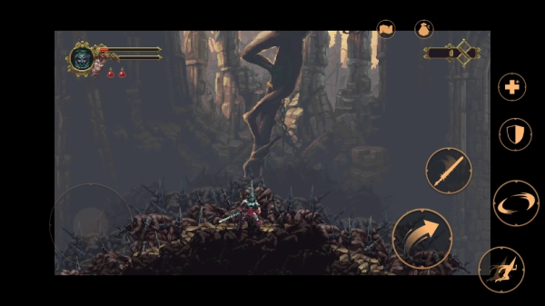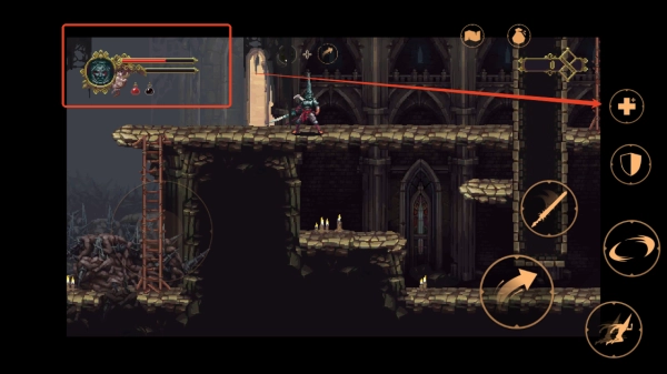 4. 当角色的生命力降低时,点击界面中的“+”号按钮,使用药瓶恢复生命力,确保角色在战斗中保持良好的状态。