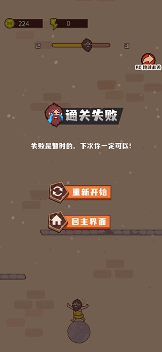 3、不小心掉下去后,游戏会提示玩家是否需要重新再来或者返回主菜单。