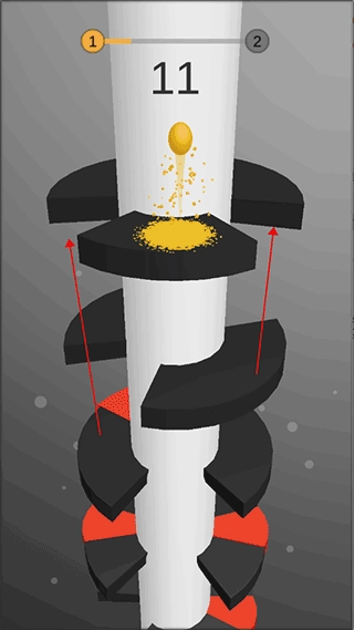 2、下降的同时不可以触碰到不同颜色的阶梯。