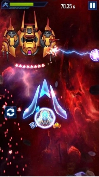 2、游戏操作与《消灭病毒》有着类似的体验,在这里玩家只需通过一根手指来控制飞船的移动、走位即可,其他的攻击全部是自动完成的,无需玩家再次点击释放。移动的时候也要时刻注意躲避敌人的战机和子弹。