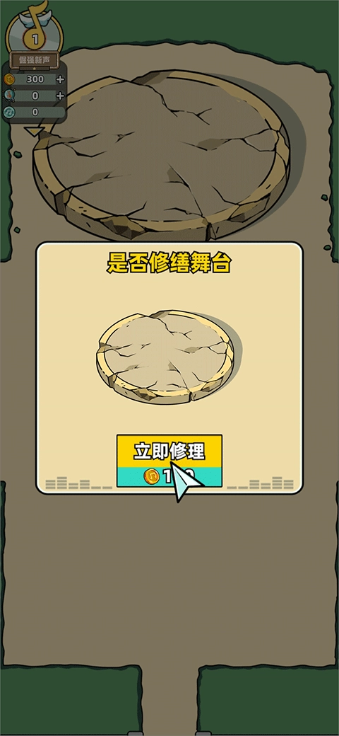 1、打开游戏后,你需要先将广场清理干净,并将舞台修建成功