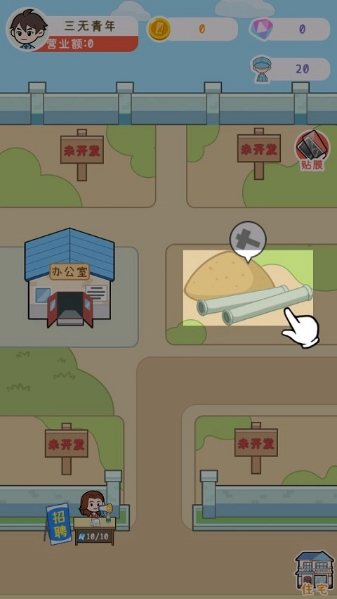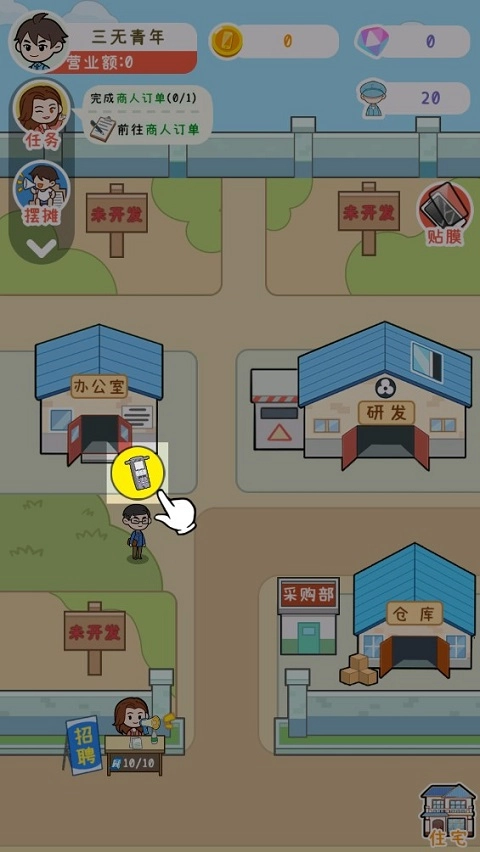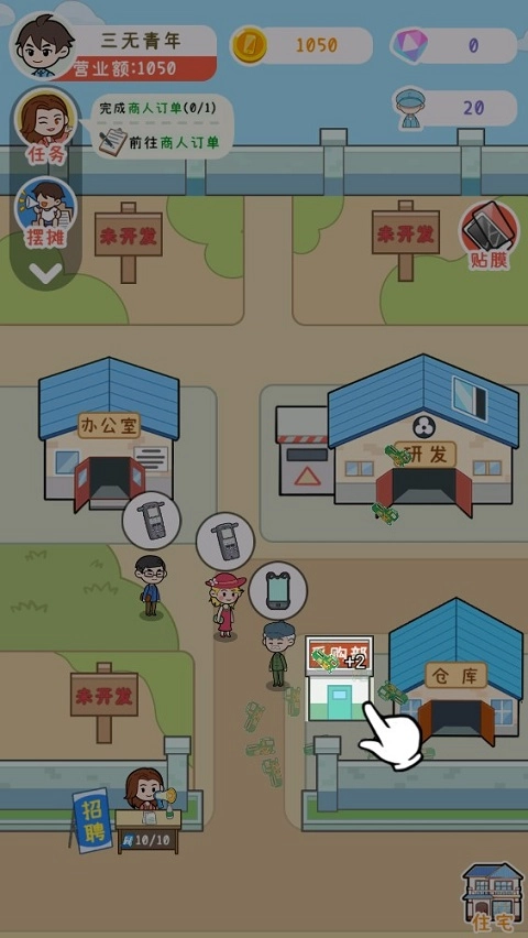 7、具备以上条件,还需要招聘工人来完成手机生产,点击门前过路的路人,即可完成招聘。