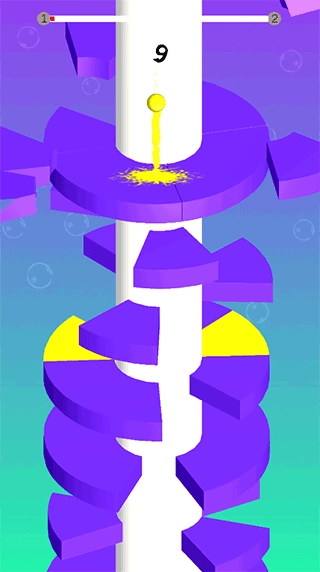 在游戏里,你得持续转动环形塔,让小球用最理想、最具冲击力的角度去击碎每一层的板材。