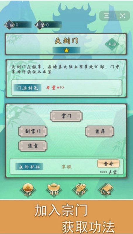 作品中加入了非常完善的门派系统,你甚至能在其中选择一个灵气浓郁的地方开山立派或是加入到其他宗门。
