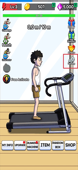 5、获得的金币可以用来升级男孩速度,耐力等的等级,也可以为跑步机升级