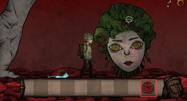 5、进门一直往右走,剧情过后逗猫棒放在书包里,继续往右走,注意手背上有宝石的手指
