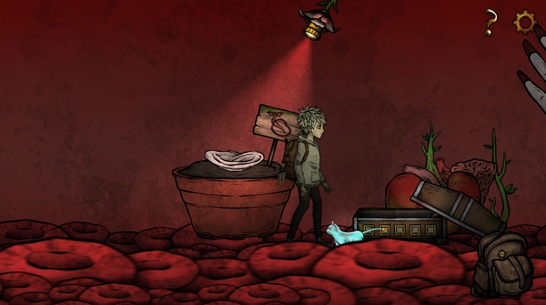这里有一个花盆,左边是水壶,这里我已经拿起来了,右边有一个箱子,根据蓝3紫8红4黄2绿1,点击后打开箱子,拿到红色种子