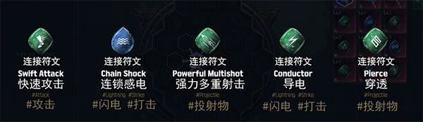 技能符文指的是游戏的一些主要技能,例如闪电、投射物、弓箭等。