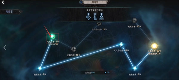 目前黄道宫还有开放的6个星座群,玩家可以通过解锁不同的星座群来获得对应的力量。这就是决定每个玩家技能发展方向不同的特性点,特性点是玩家在10级之后,每升一级,会获得1点的特性点,玩家可以在星座群进行分配。