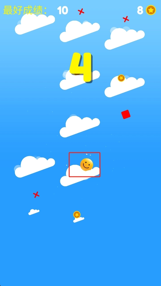 2、小黄人从云层顶端开始下落,指尖轻点屏幕左侧或右侧,控制它避开迎面而来的石块,同时伸手接住飘过的金币。