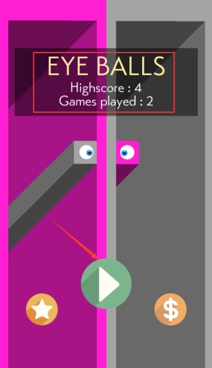 1、点击红框内的绿色播放按钮,即可开启眼球躲避游戏的挑战。