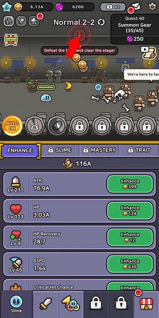 3、《史莱姆传奇》这款游戏里有着数量众多的关卡与BOSS,只有将它们全部战胜,玩家才能实现自我能力的提升。