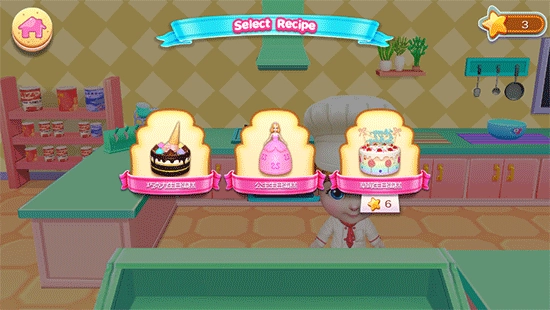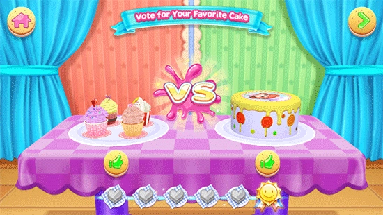 3、有了足够的星星之后就能解锁公主造型的蛋糕,再和前面一样根据提示完成制作蛋糕即可,喂给小宝宝吃完即可去参赛,并且给蛋糕进行投票,赢了即可获得相应的星星奖励,星星可以解锁新的蛋糕造型。