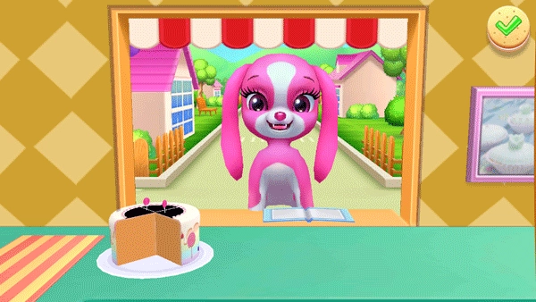 进入游戏后,会收到好朋友的求助——需要制作一个生日蛋糕。此时只需按照屏幕上的步骤提示,一步步完成蛋糕的制作与装饰,最后喂它吃完就可以了。