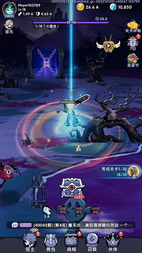 1、挂机战斗:该游戏的核心玩法是挂机放置,玩家能把角色安置在地图上,角色处于离线状态时会自动进行战斗并积累资源。这种玩法使玩家可以轻松体验游戏的乐趣,还能有更多时间去挖掘游戏的深度与广度。