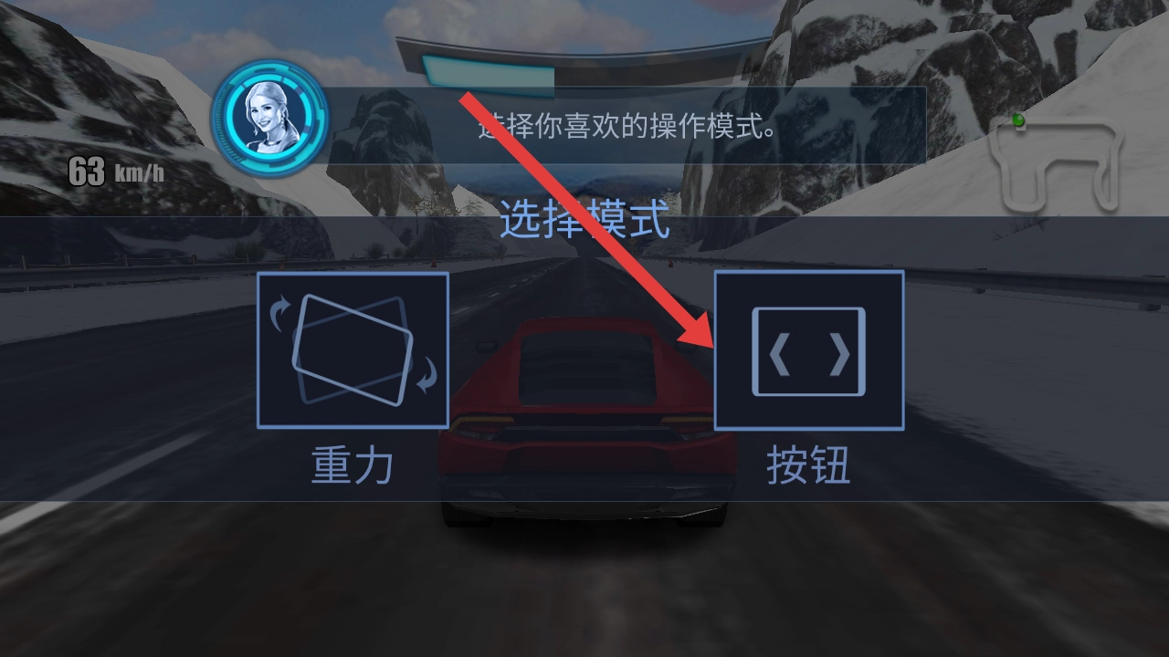 1、可挑选自己偏好的操控模式,点击右侧按钮的对应选项后,就能借助虚拟方向键来控制车辆转向。