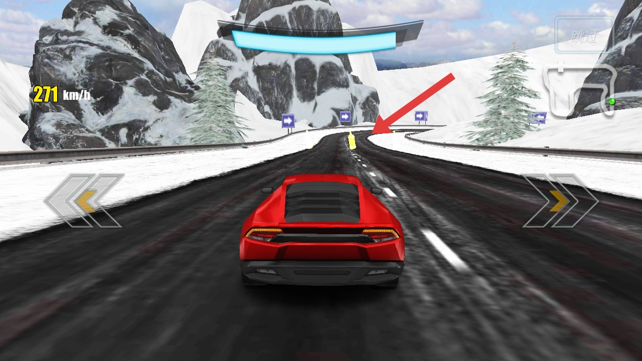 3、进入赛车弯道时,同时按住方向键与左下角刹车按钮,触发漂移,维持车速与轨迹稳定。