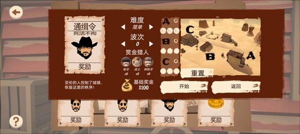 在快速模式下,玩家可以快速开始毫不墨迹,每张图有三个不同难度,最多可加入额外5波敌人,三个不同的入侵点供选择 ,雇佣赏金猎人组队杀敌。而在故事模式下,玩家可以跟随剧情来深入关卡,体验人物之间的命运与羁绊。感兴趣的朋友还在等什么,快来化身西部牛仔尽情射击吧!