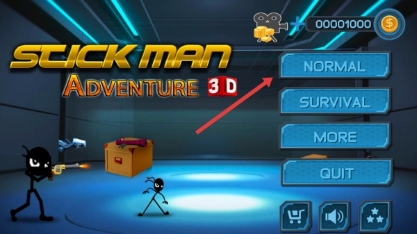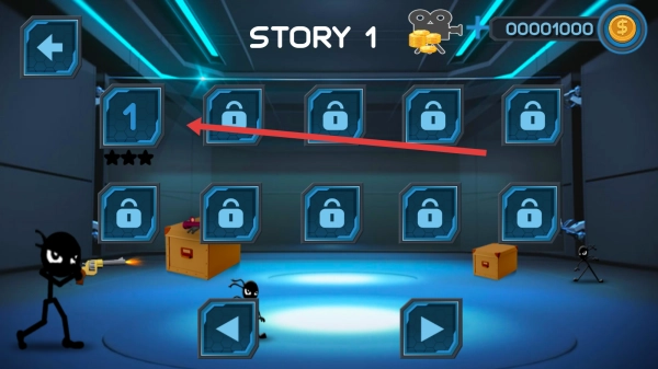 1、在主界面,选择【NORMAL】模式,进入“STORY1”,点击关卡“1”,开启火柴人3D冒险之旅。