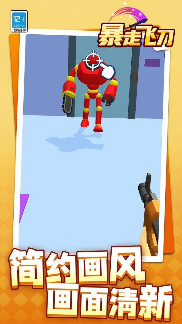 2、游戏中有爆头设定,玩家若能精准投掷飞刀击中机器人头部,可将其秒杀,这对玩家的投掷精准度有较高要求。