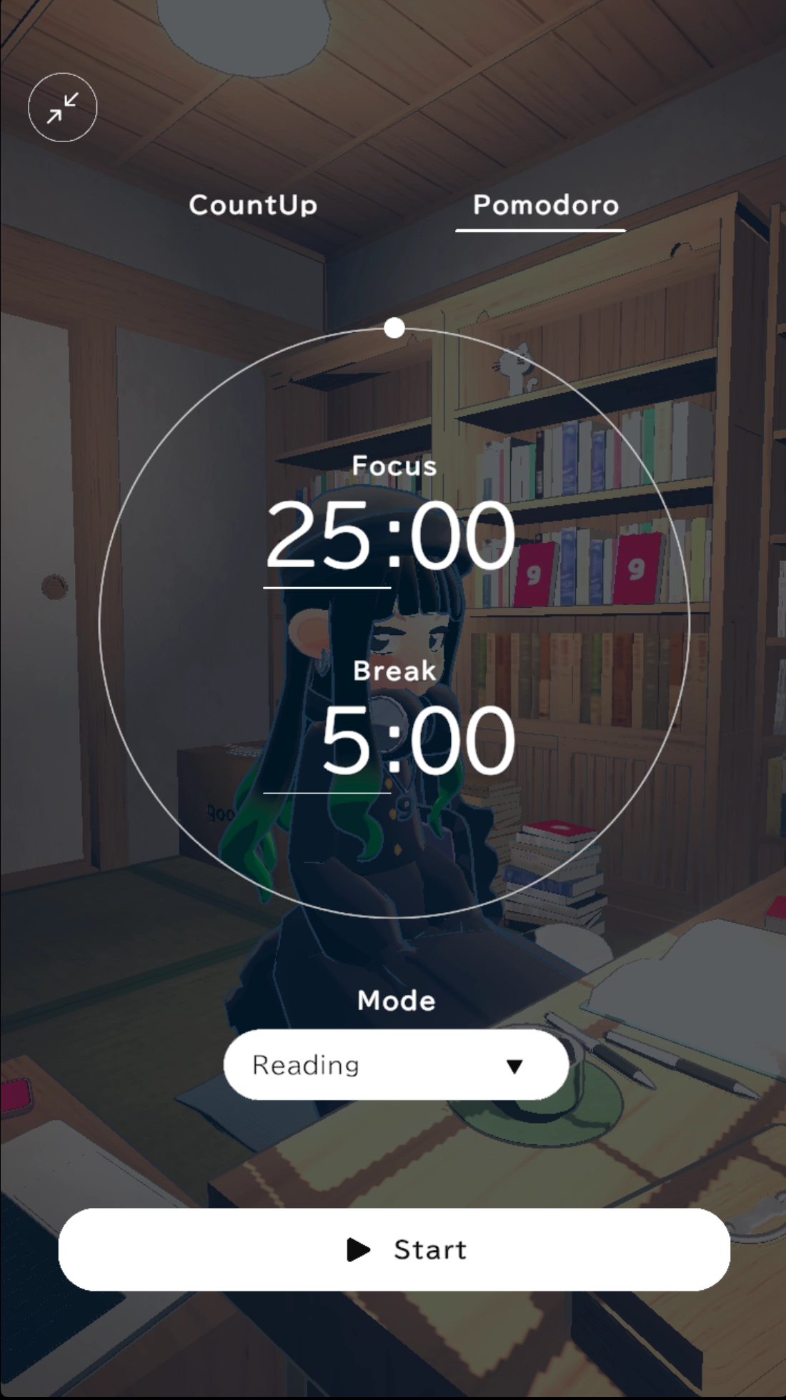 不仅如此,gogh正版还了番茄时钟,各种不同的白噪音和背景音乐供玩家选择,屋外的时间环境也可更换,从白天到黄昏再到黑夜,给角色更换各种姿势与动作,可以看书、玩电脑、玩手机和发呆等,在专注模式下陪伴玩家,给玩家营造一个适合娱乐学习与工作的沉浸式环境。