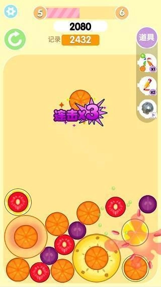 1、不仅仅是通过合成这么简单,水果中间隔的缝隙是游戏的难处所在。