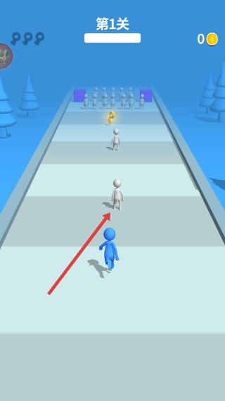 2、闯关战斗:在“第1关”路径,击败灰色、黄色敌人,壮大蓝色人群规模。