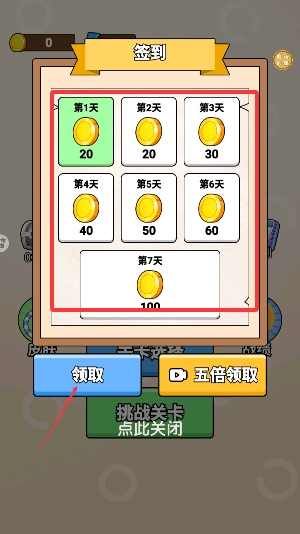 2、进入游戏后,首先领取每日签到奖励。