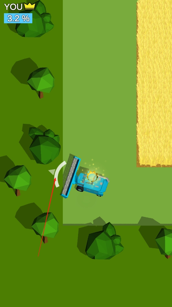2、农场的庄稼分布会更分散,还会出现石块等障碍物,需操控收割机灵活避开,同时规划最优行驶路线,最大化收割范围,将庄稼运至谷仓兑换金币。