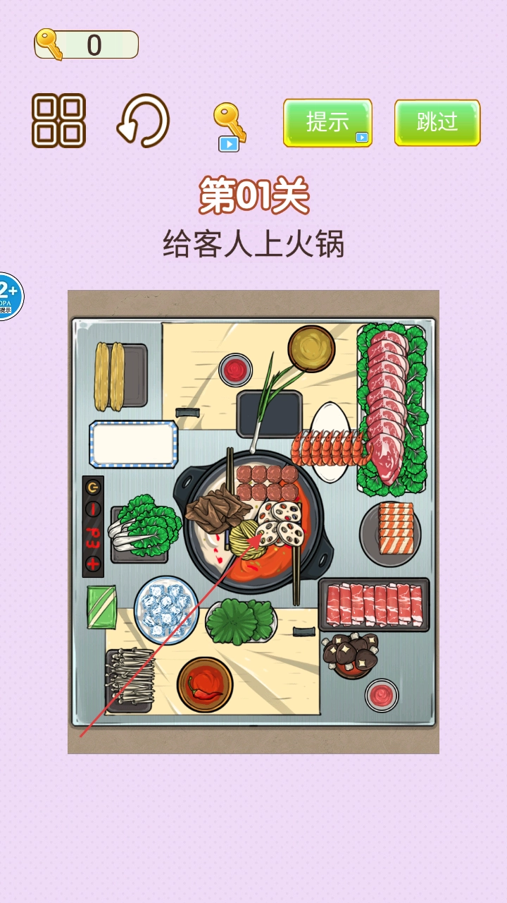 1、在主界面点击“开始游戏”,即可进入第01关“给客人上火锅”的场景,开启一段轻松愉快的游戏之旅。