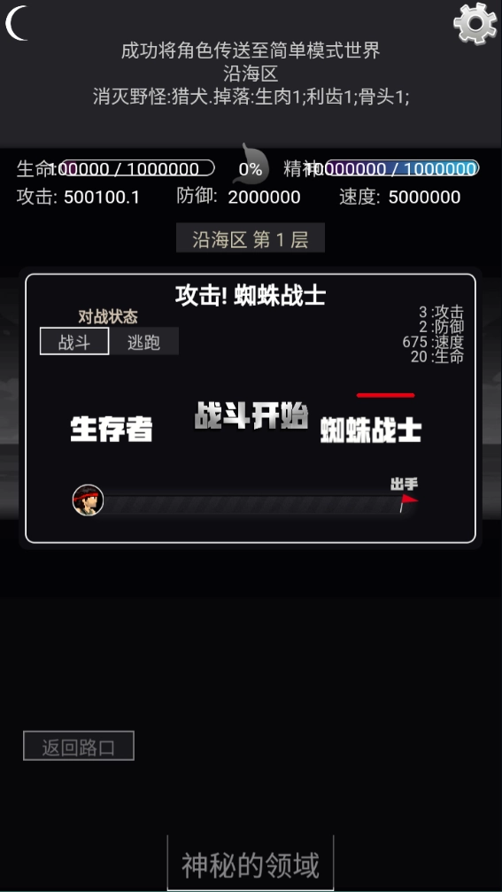 5、战斗模式现在开始,攻击!蜘蛛战士