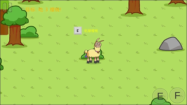 我们先进入《饥饿的拉姆》游戏里,跟着旁白的提示能了解到我们的拉姆饿了,得去找到3颗樱桃才行。