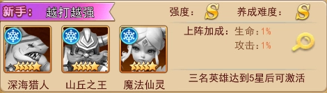 组合说明:深海猎人与山丘之王都是越打越强的战士,战斗的回合越往后,该组合获得优势的越大。