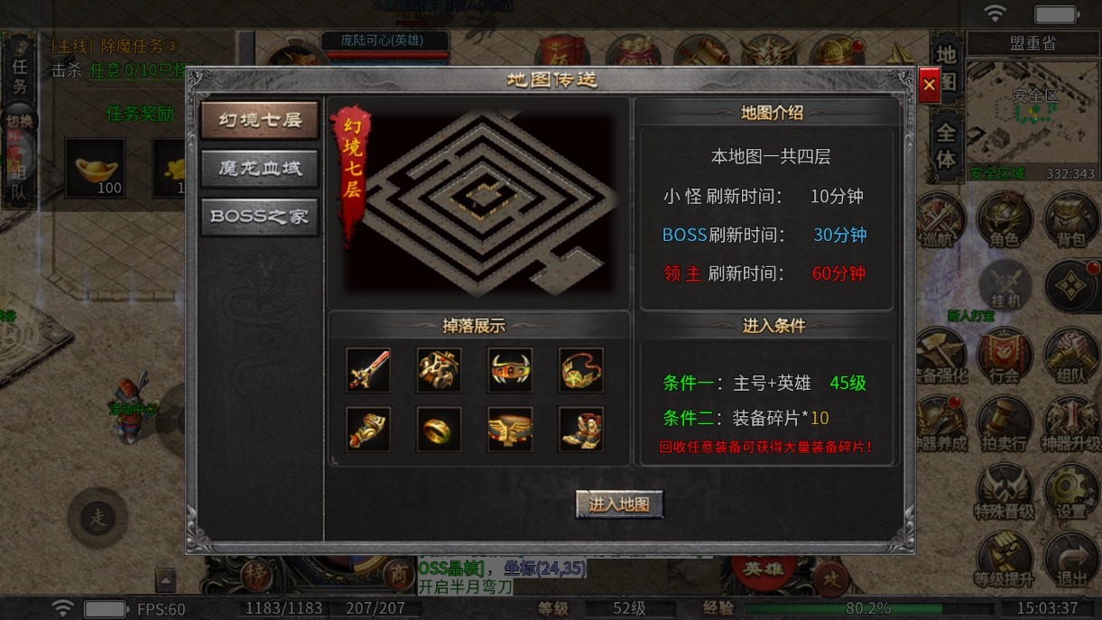 3.从经典复古的“比奇城”到高难度的“魔龙深渊”,游戏提供数十张主题地图,满足不同阶段玩家的探索需求。