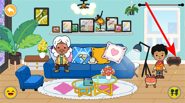 2、玩家能看到收音机等物品,点击收音机,可触发播放音乐等互动,营造温馨氛围,同时还可与沙发上的角色交流,开启趣味对话