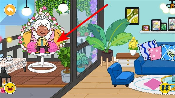 3、来到阳台区域,有装饰精美的吊椅,让角色坐上吊椅,能模拟悠闲休憩的状态,感受惬意乐趣。